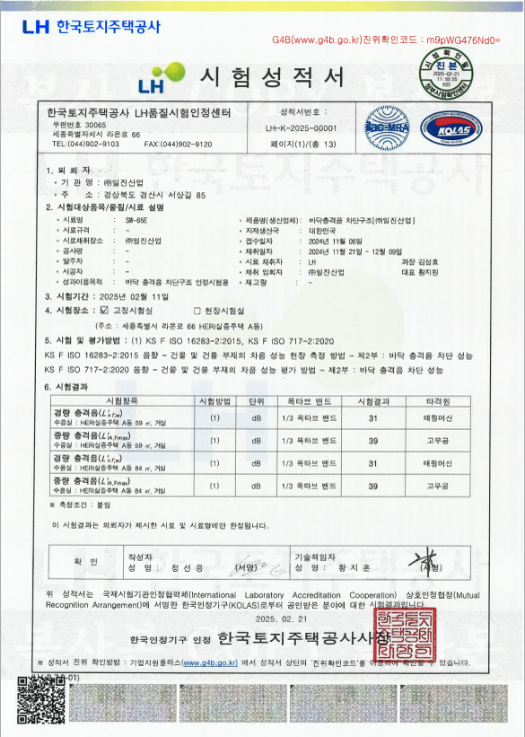 SW-65E 실증 현장 성능 성적서