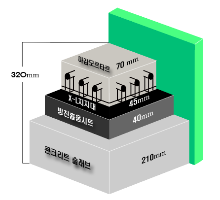 슬래브210 + 방진흡음시트40 +PT지지대50 + 마감몰탈70 = 표준320